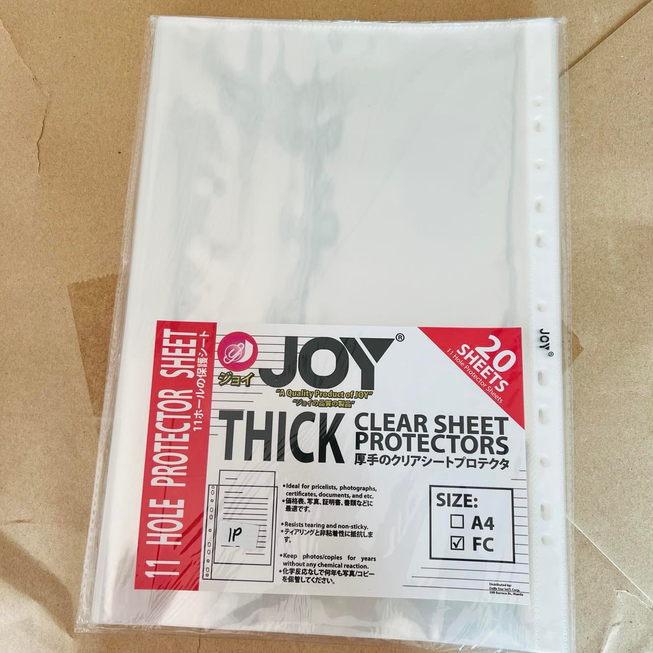 CLEAR SHEET PROTECTORS / JOY THICK 11 HOLE PROTECTOR SHEETS LONG/A4 20