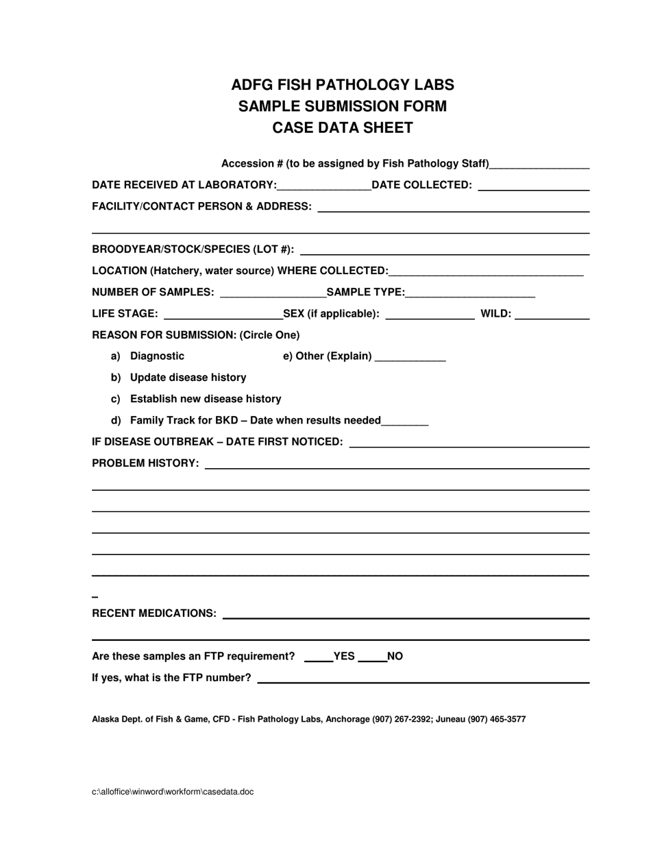 Alaska Adfg Fish Pathology Labs Sample Submission Form Case Data