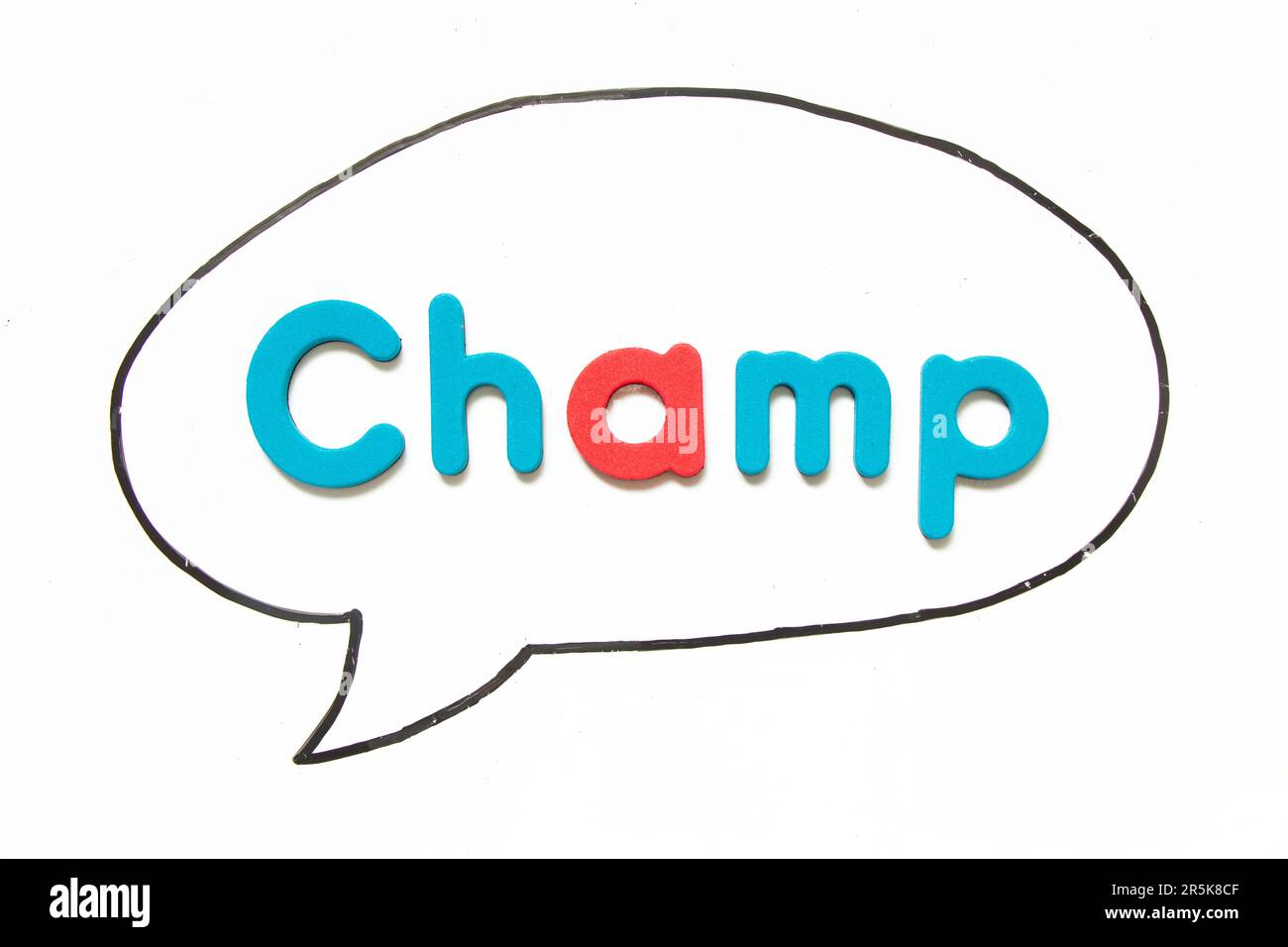 Alphabet letter with word champ in black line hand drawing as bubble