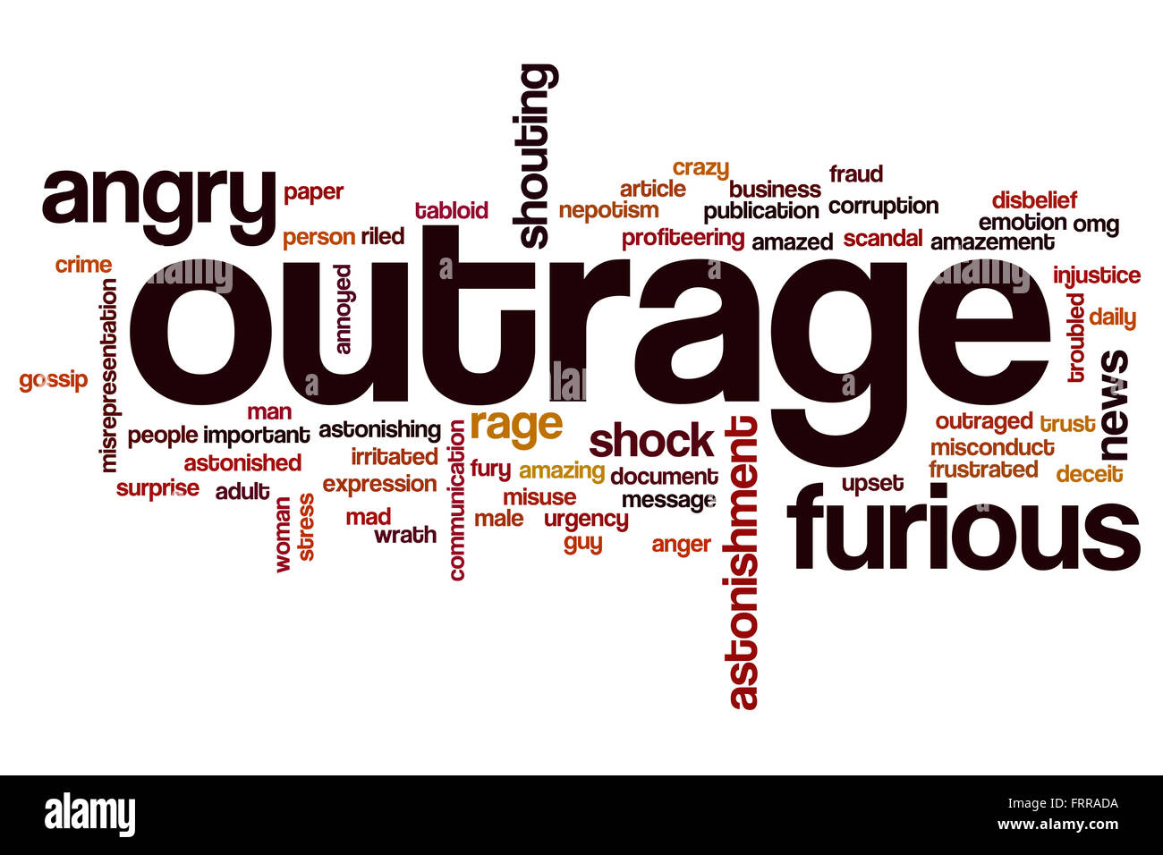 Outrage word cloud concept with angry rage related tags Stock Photo Alamy
