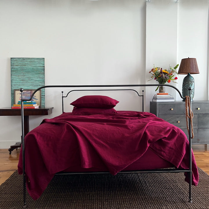 Burgundy Linen Sheet Set Linen sheet sets, Italian linen bedding