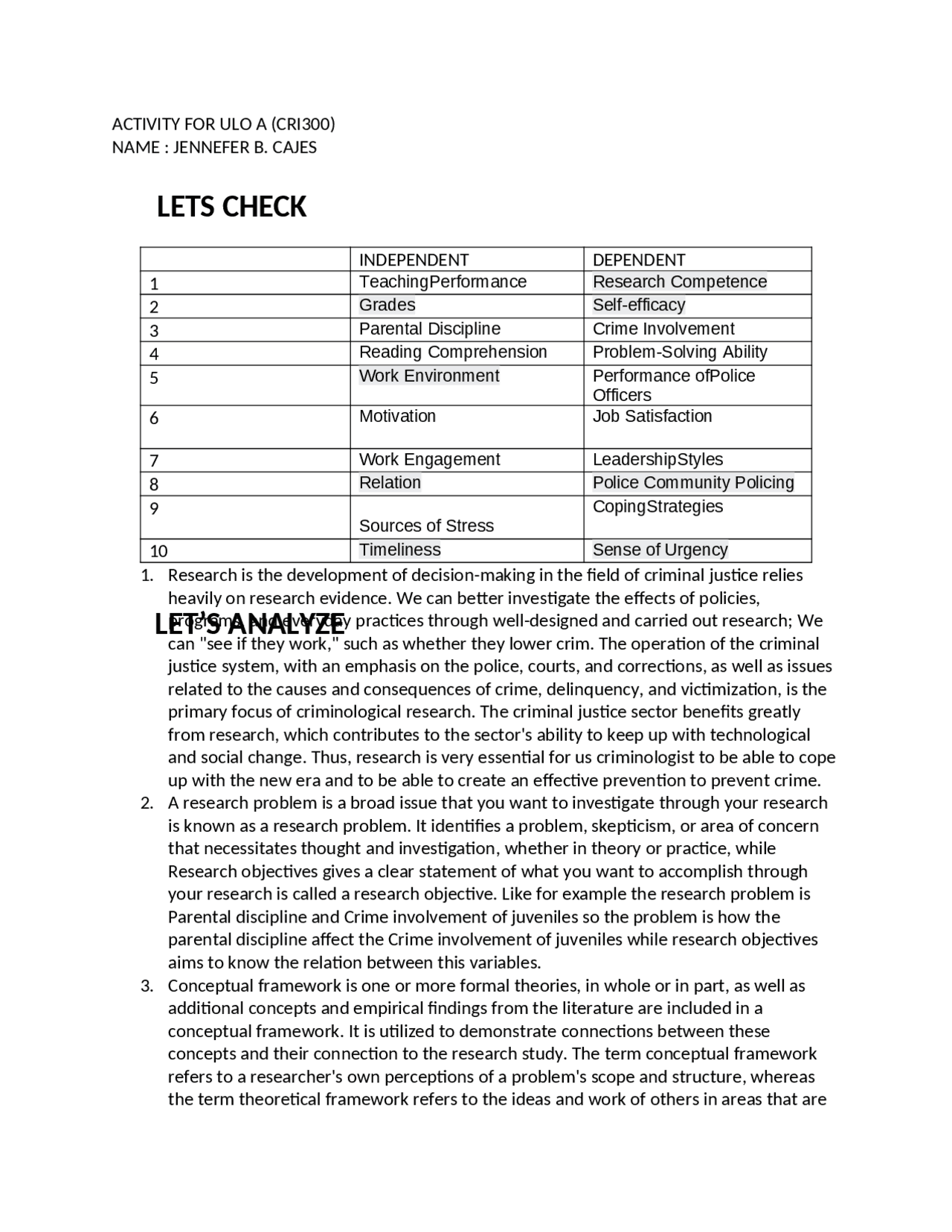 Independent and dependent variable Cheat Sheet Criminology Docsity