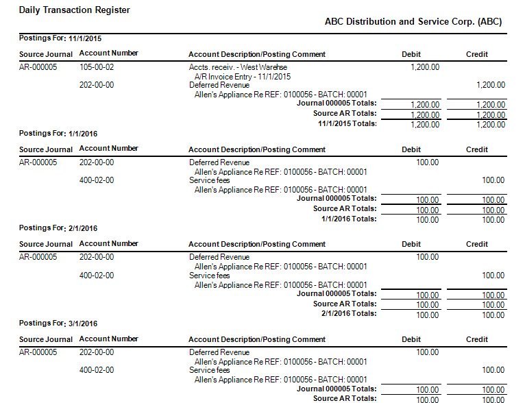 Sage 100 Accounts Receivable Deferred Revenue Posting