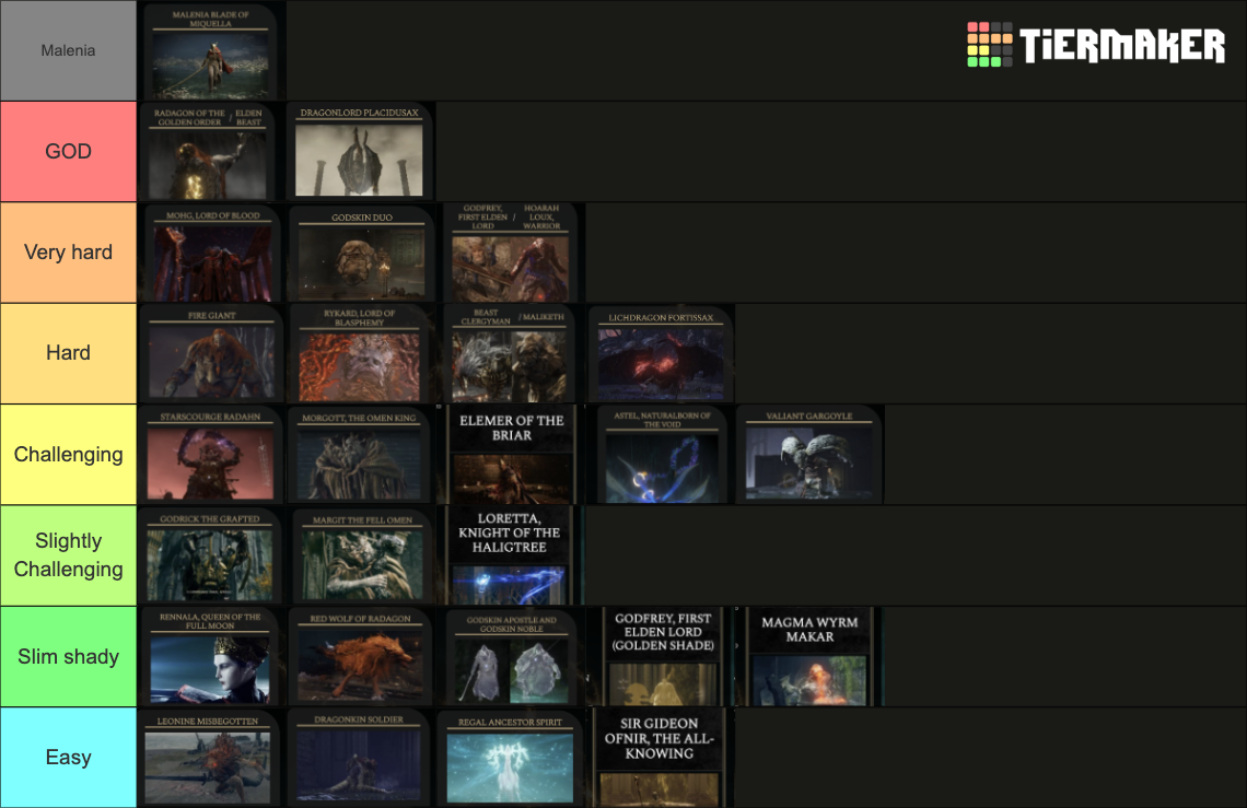 Elden Ring Bosses Difficulty Tier List Rankings) TierMaker