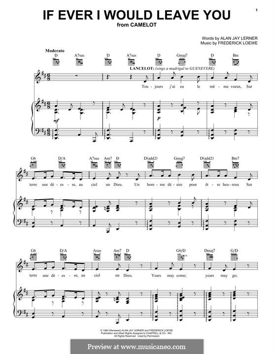 Arrangement for piano, vocal, lyrics and chords and guitar. By alan jay lerner, camelot,. If ever i would leave you pdf sheet music.