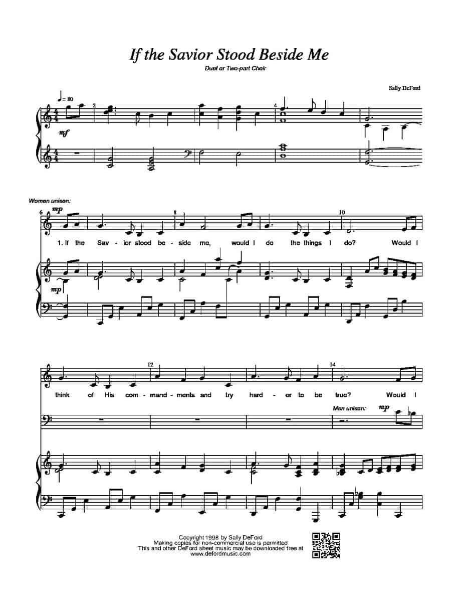 You can also (probably) get an original sheet music/lyrics/related scriptures for if the savior stood beside me (in a flash. There are now so many different versions of this song in circulation that this page is set up in a different format than usual. Defordmusic, defordmusic.com, sally deford music, sally deford genres: Share, download and print free sheet music of.
