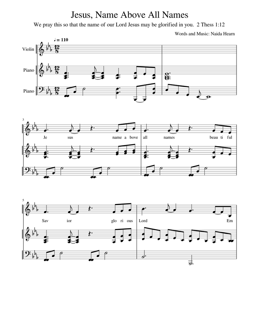 Jesus name above all names sheet music. Share, download and print free sheet music of jesus name above all names naida hearn for piano, guitar, flute and more with the world's. Get free jesus, name above all names sheet music by kay wachter as a digital notation file for piano/vocal in f major (transposable). Browse our 11 arrangements of jesus,.