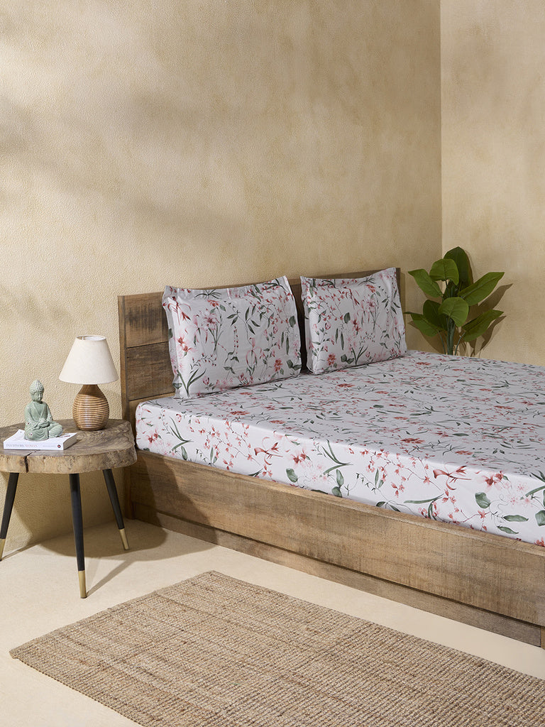 Buy Westside Home Pink Floral Design King Bed Flat Sheet and Pillowcase