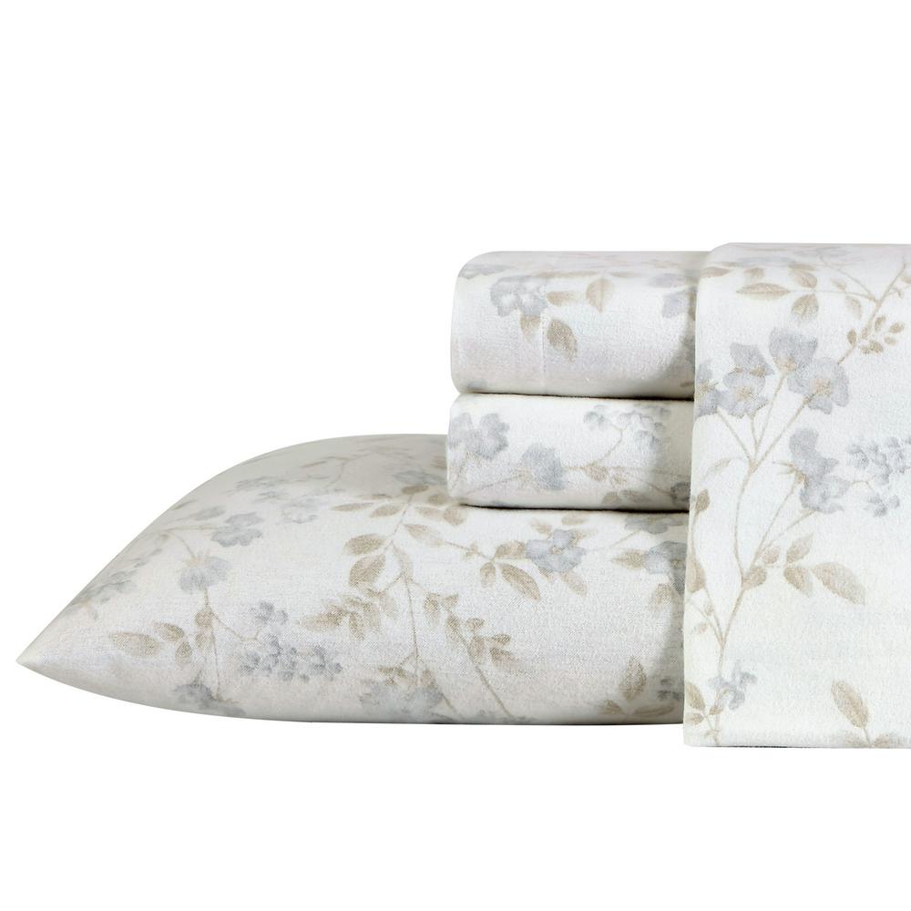 Laura Ashley Fawna Flannel 4Piece Gray Floral Cotton Queen Sheet Set