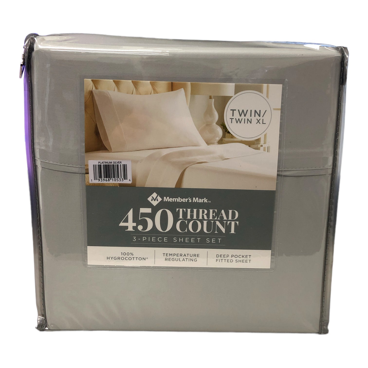Member's Mark 450ThreadCount Twin/Twin XL Sheet Set, Platinum Silver