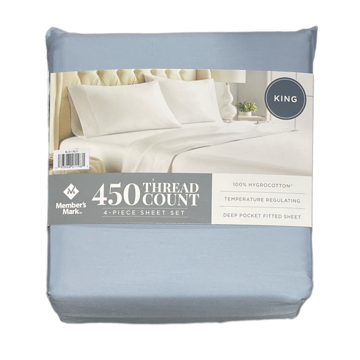 Member's Mark 450ThreadCount Solid 4 Piece Sheet Set, King, Blue Cre