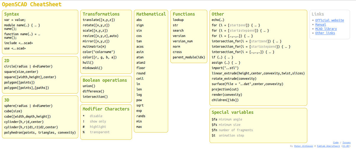 OpenSCAD Cheat Sheet by Download free from Cheatography