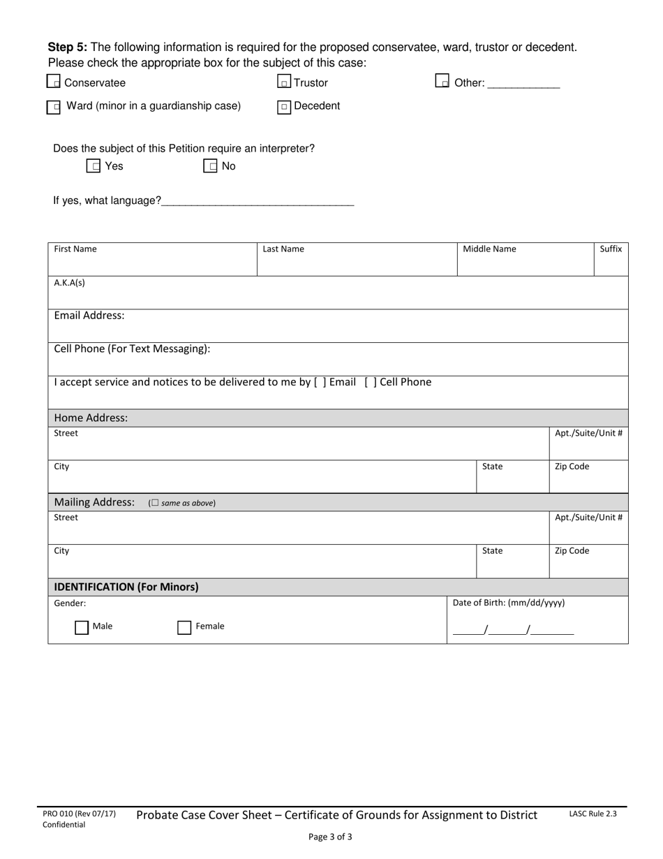 (type or print) place an x next to. Submit this form with new cases only. You will need to use these forms when you file your case. This form is required for all new probate cases filed in the los angeles superior court. A probate division cover sheet shall be filed with the initial petition in all actions filed in.
