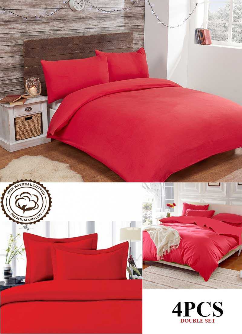 Red Double Bedding Set cotton 4Pcs Brand Bed Sheets Fitted Bed Sheet 2