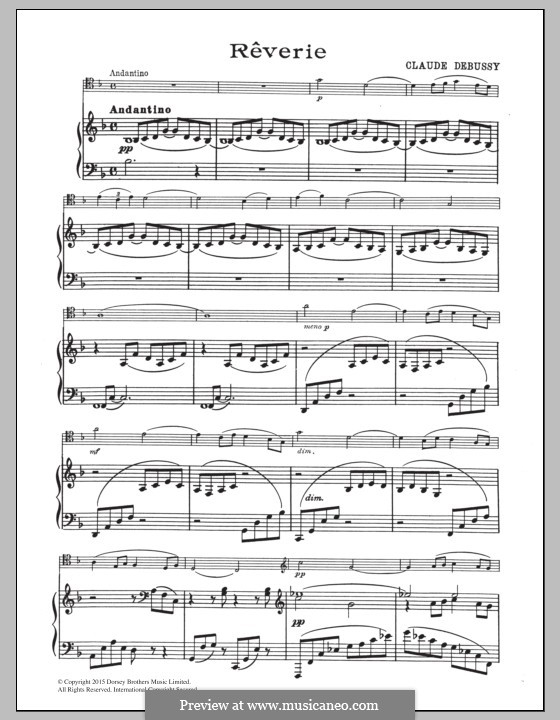 Reverie Piano Sheet Music - This piece is level 8 and was composed during the impressionism period. It was first performed in 1899 by germaine alexandre. Reverie is a piano piece by claude debussy, written in 1890, and published in 1891.