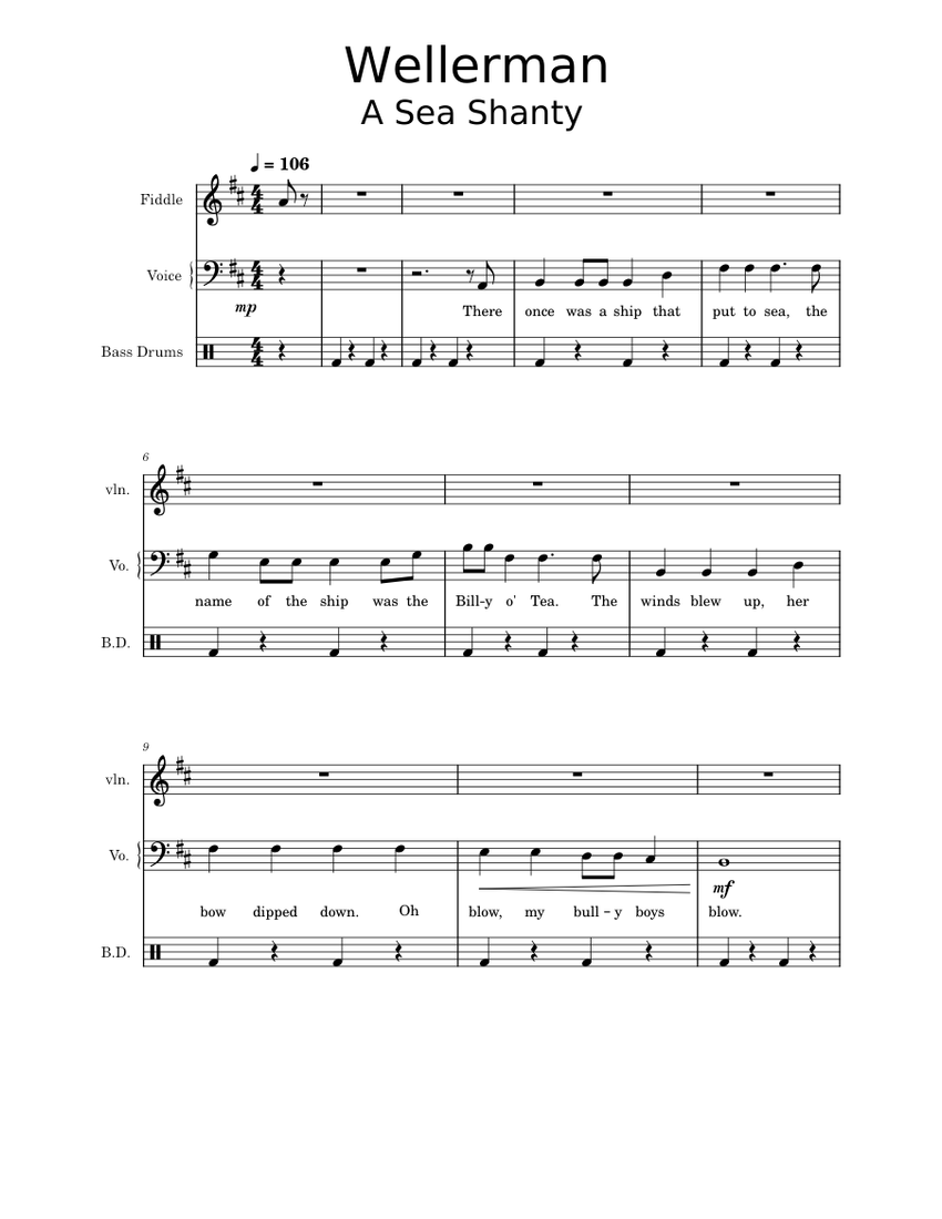Wellerman (Sea Shanty) Sheet music for Piano, Violin, Bass drum (Mixed
