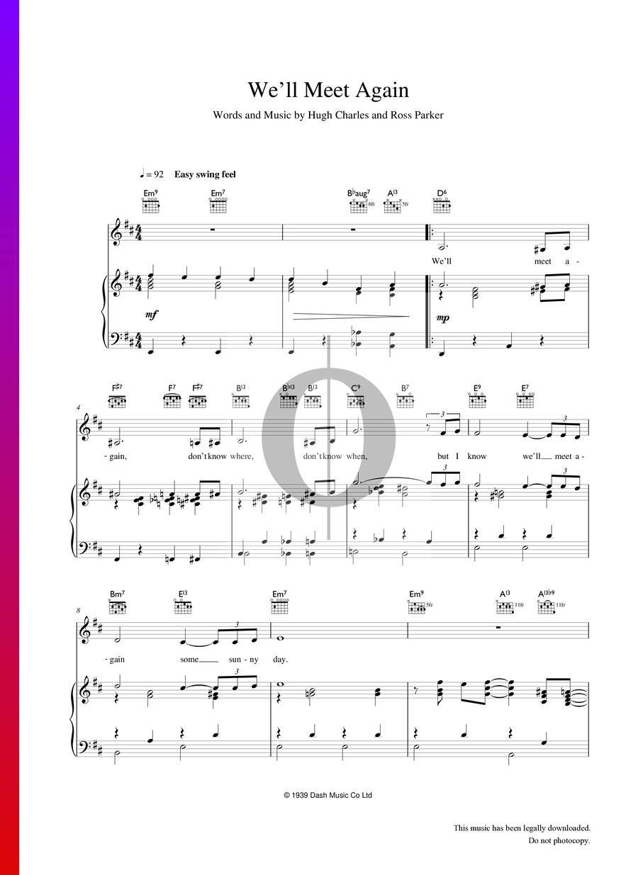 Share, download and print free sheet music of we'll meet again vera lynn for piano, guitar, flute and more with the world's largest community of.