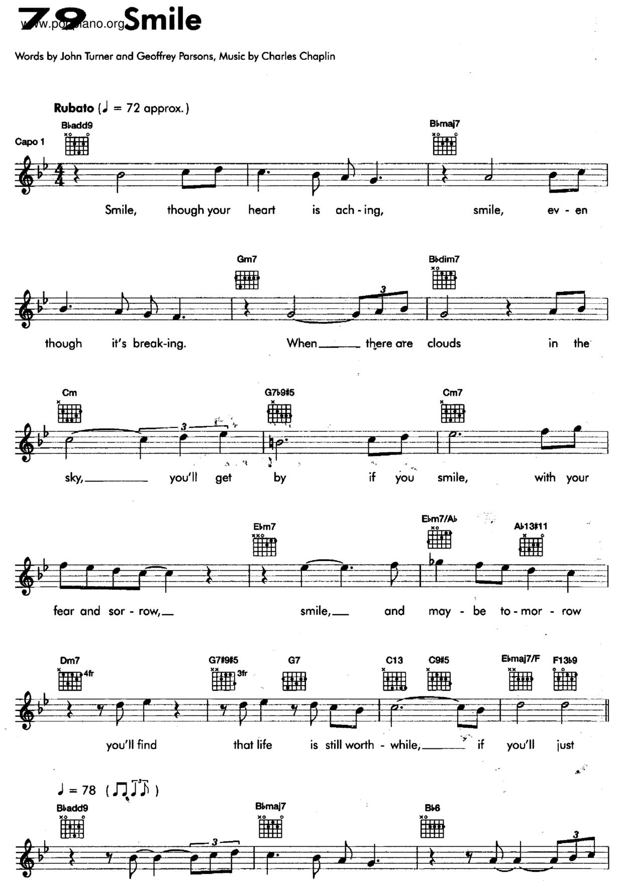 Xx f 3 gm7 x x c9 c7b9. Share, download and print free sheet music of smile charlie chaplin for piano, guitar, flute and more with the world's largest community of. Free sheet music for amateur musicians and learners! Sheet music port is a site for those who wants to access popular sheet music easily,.