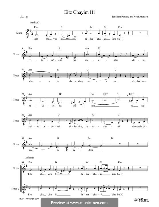 Eitz Chayim Hi by T. Portnoy sheet music on MusicaNeo