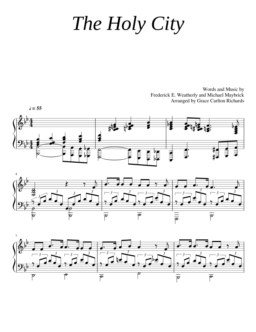 Share, download and print free sheet music of the holy city stephen adams for piano, guitar, flute and more with the world's largest community of sheet music creators, composers, performers,. Browse our 9 arrangements of the holy city. sheet music is available for piano, voice, alto saxophone and 22 others with 7 scorings in 8 genres. Find your perfect arrangement.