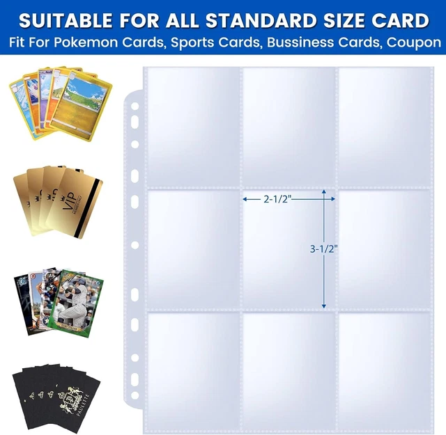 Trading Card Sleeve Pages, PANDRI 100 Pack 9 Pocket
