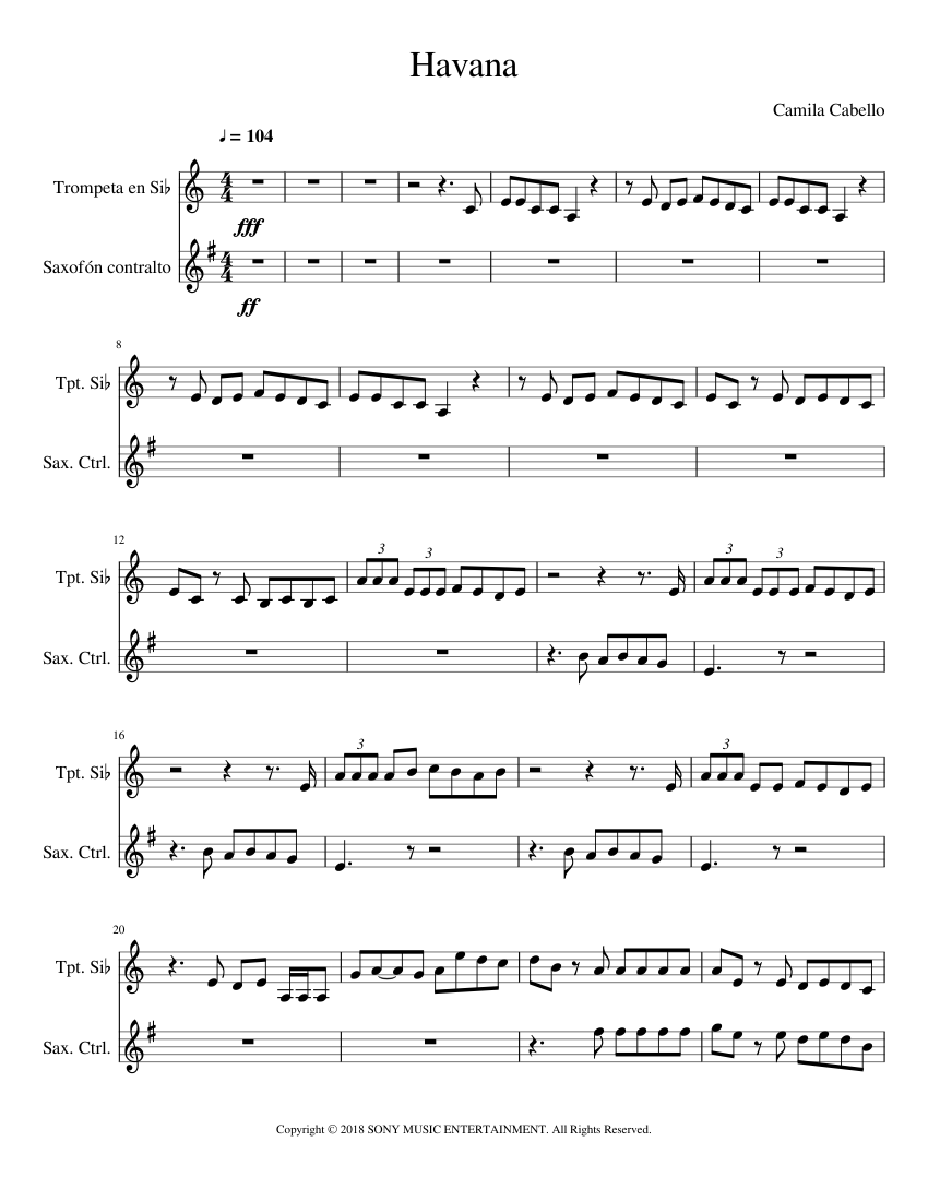 Havana Sheet music for Saxophone alto, Trumpet in bflat (Mixed Duet