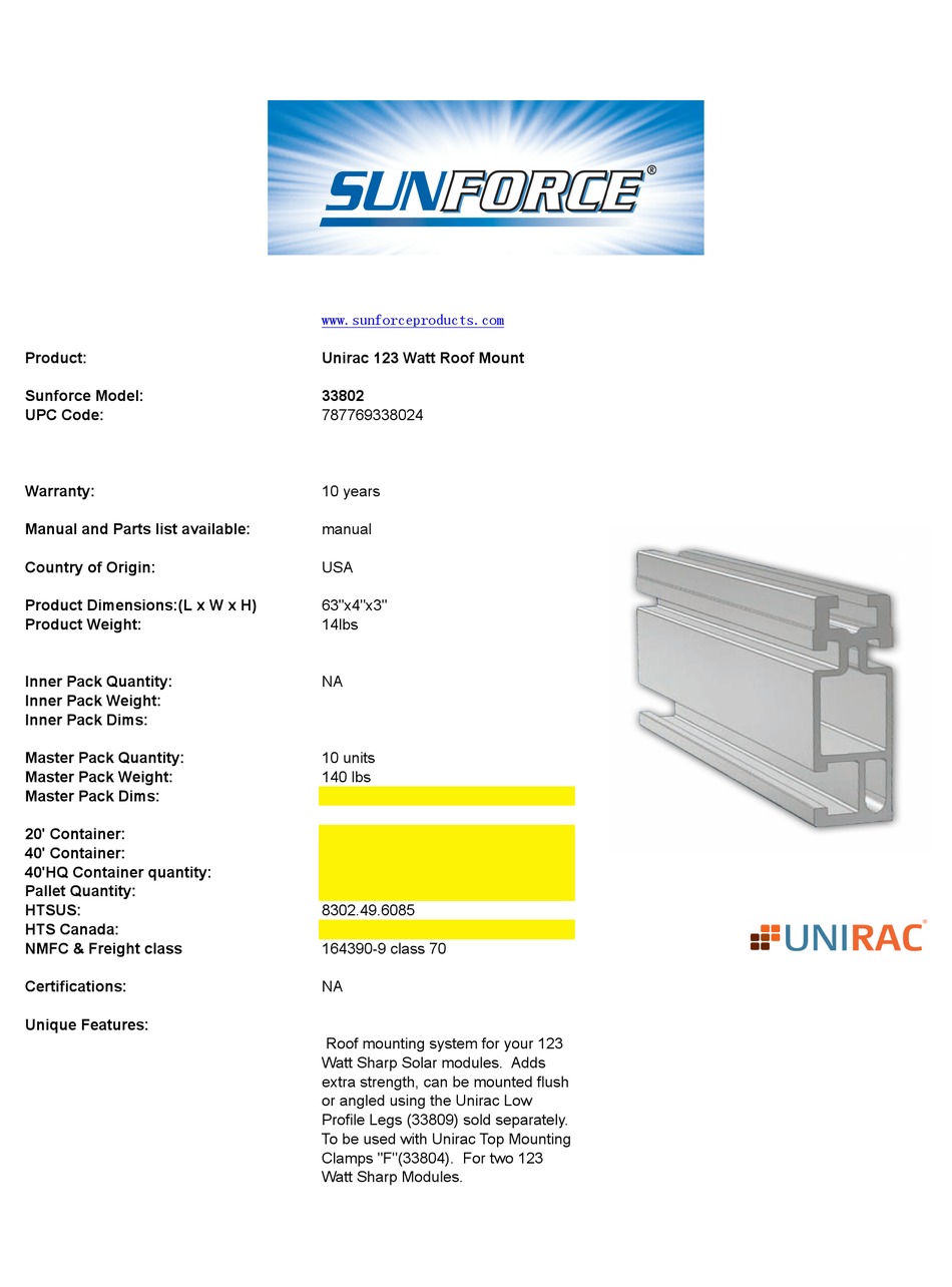 SUNFORCE UNIRAC 33802 MANUAL Pdf Download ManualsLib