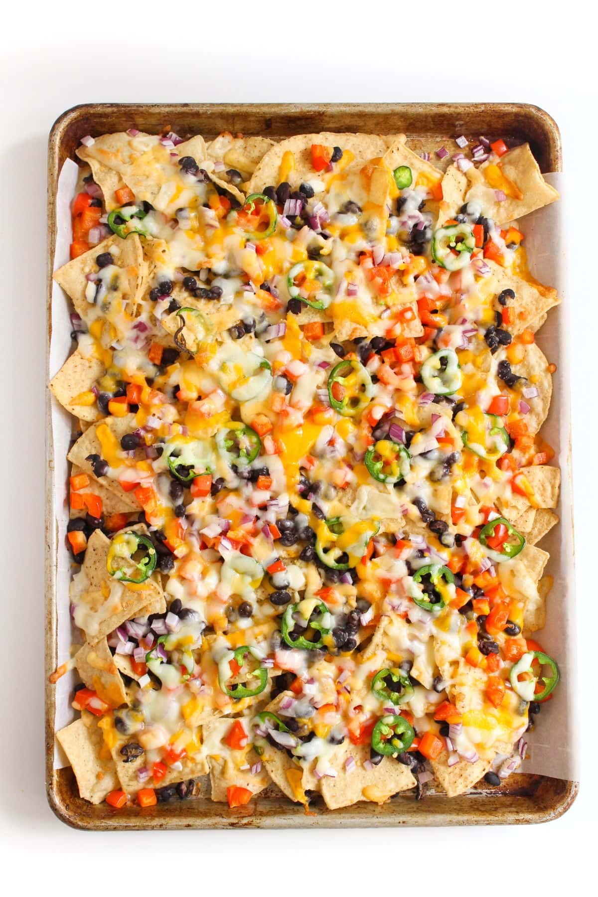 For this quick and easy, 20 minute loaded vegetarian sheet pan nachos recipe just scroll down! Loaded with colorful veggies and lots of delicious melted cheese, this easy vegetarian sheet pan nachos recipe can be made in under 30 minutes and served as an appetizer. Baking them on a sheet pan is so simple, and it’s the. These meatless nachos.