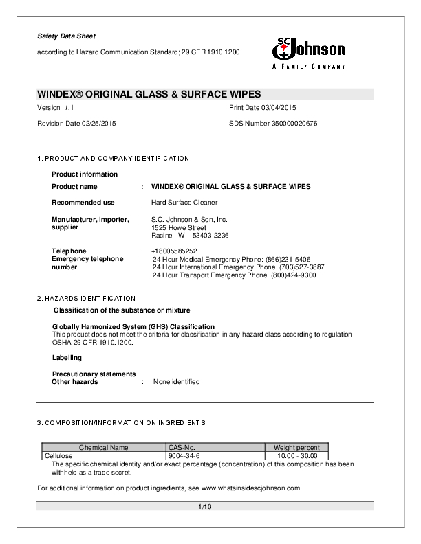 Windex Msds Data Sheets - Reserved for industrial and professional use. This document has been prepared using data from sources considered to be technically reliable. The information provided in this safety data sheet is correct to the best of our knowledge, information and belief at the date of its. Ry statements other hazards : See section 8 for information on personal protection equipment. This document has been prepared using data from sources considered to be technically reliable. It does not constitute a warranty, expressed or. This document has been prepared using data from sources considered to be technically reliable. See section 13 for disposal information. It does not constitute a.