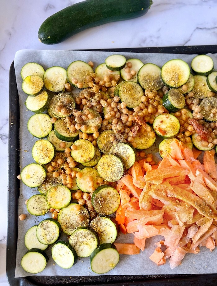 On Sheet Pan, Combine Zucchini, Summer Squash,.